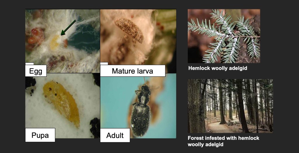 - Determined live cycle, fecundity, host synchrony and thermal development requirements of a beetle predator, Laricobius nigrinus (Coleoptera: Derodontidae) being evaluated for biological control of hemlock woolly adelgid, Adelges tsugae (Hemiptera: Adelgidae)